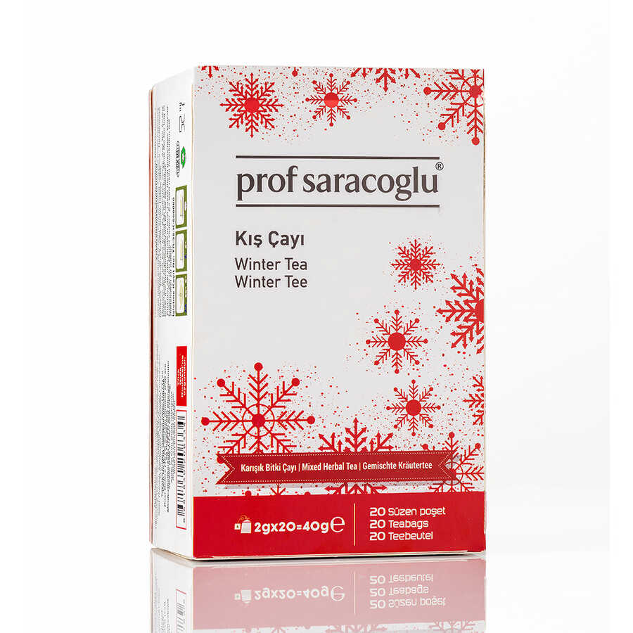 Kış çayımızla kış aylarını sıcacık geçirin!Prof Saracoglu Kış Çayı, yedi farklı bitki içeriğiyle formüle edilen ve özellikle kış aylarında ailecek tüketebileceğiniz bitki çayıdır.Her türlü soru ve sorununuz için 0850 221 01 61 numaralı çağrı merkezimizden bizi arayabilir, www.profsaracoglu.com internet sitemiz üzerinden canlı destek alabilir ya da info@profsaracoglu.com adresine mail atabilirsiniz.