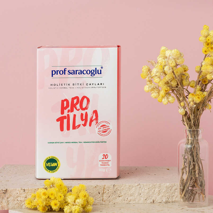 Prof. Dr. İbrahim Saraçoğlu’nun özenle geliştirdiği ve yılların bilgi birikimiyle yenilediği bu eşsiz formül; Pro Tilya 20'li Süzen Poşet Karışık Bitki Çayı kullanım kolaylığı sağlayan yeni ambalajıyla bir araya gelmiştir.